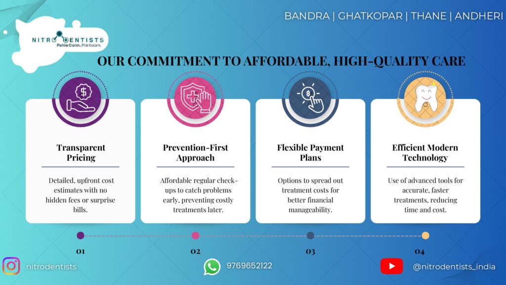 Don’t let financial concerns dictate the health of your smile. At Nitrodentists, we are dedicated to providing the Khar West community with dental care that is not only world-class but also accessible and affordable.