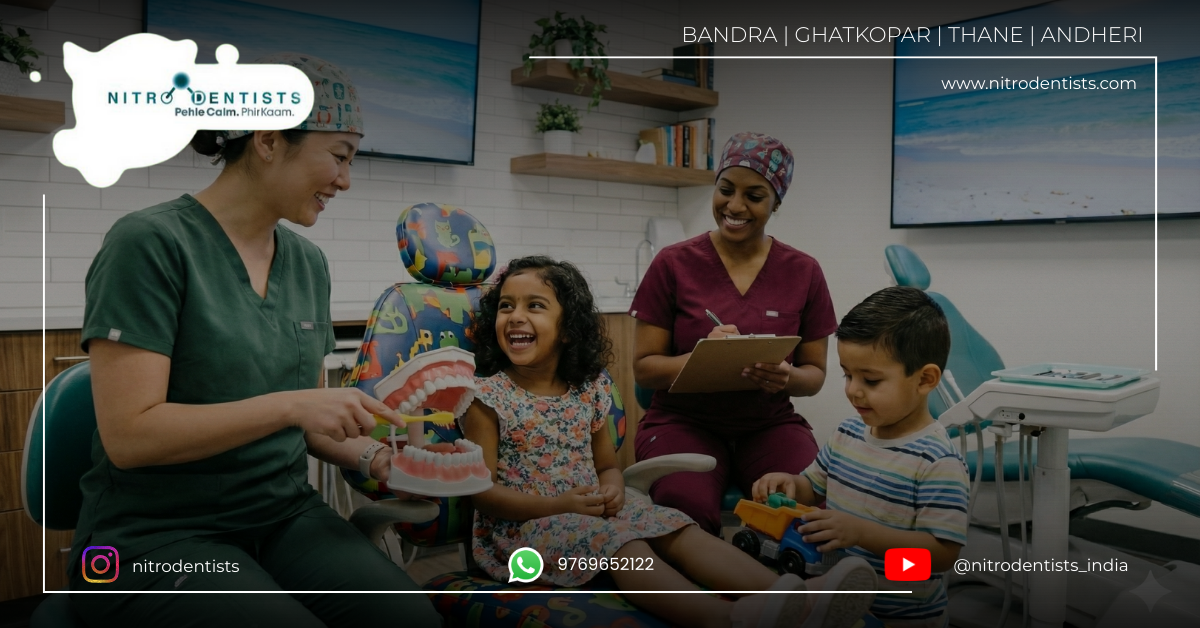 Nitrodentists is your neighborhood pediatric dental specialist, conveniently located for families in the Makhija Royale area. We understand that a child’s dental experience should be positive, gentle, and free from fear. Our entire practice is designed to cater to the unique needs of children, combining a fun, welcoming environment with our specialized expertise in pain-free dentistry. We are here to prove that a visit to the dentist can be a happy and stress-free event for both you and your child.