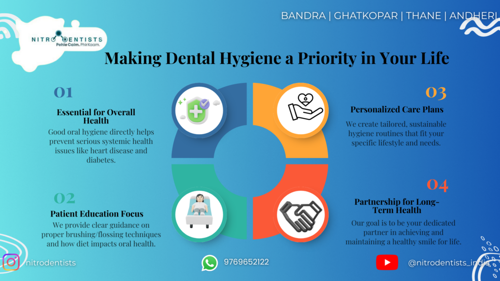 Consistent dental hygiene is about more than just having a bright smile; it is a crucial component of your overall health. Poor oral health has been linked to various systemic conditions, including heart disease, diabetes, and respiratory infections. At Nitrodentists, we are passionate about empowering our patients with the knowledge and tools to make dental care a seamless part of their daily routine.