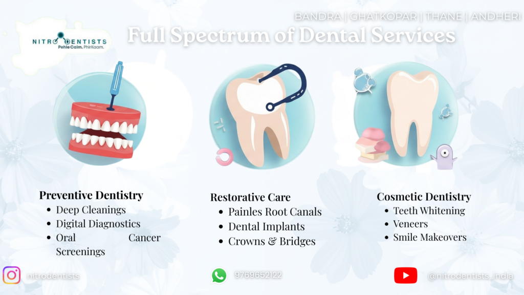 If you are near National College or the Bandra/Khar border, you don’t have to compromise on your dental care. Nitrodentists offers the perfect blend of accessibility, modern technology, and a compassionate, anxiety-free approach.